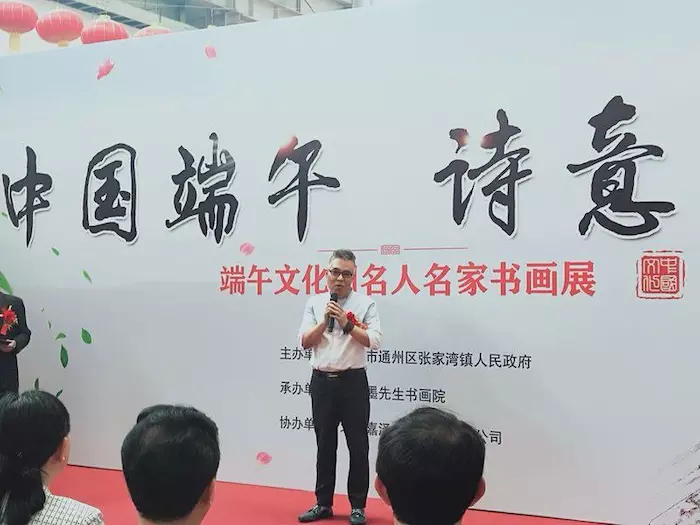 6月7日,由北京张家湾镇政府主办、墨先生书画院承办的“中国端午·诗意古镇”张家湾镇端午文化周名人名家书画展在张家湾文化艺术博览苑隆重开幕。通州区关工委常务副主任王亚兰、文联主席樊淑玲,张家湾镇党委书记聂玉泉、党委委员宣传部长陈瑞昆、关工委专职副主任刘如贵等领导,以及著名书画教育家华敬俊、著名书法家吕云峰、中书协会员通州区书协秘书长(副主席)黄添喜、著名画家墨先生书画院院长孙辉、著名书法家王士杰、北京书法教育研究会副会长著名书法家窦万兴、公安部书协副秘书长魏增宇、中国书画导航网总编姜乃军等40余名书画艺术家共同出席本次活动,开幕式由著名书画家、墨先生书画院秘书长张雅祥主持。