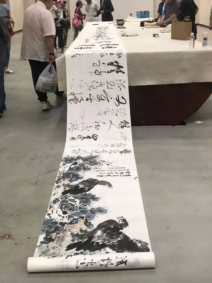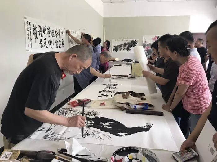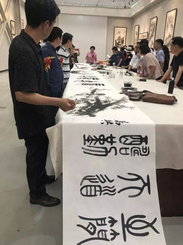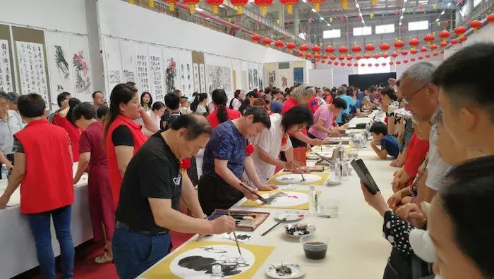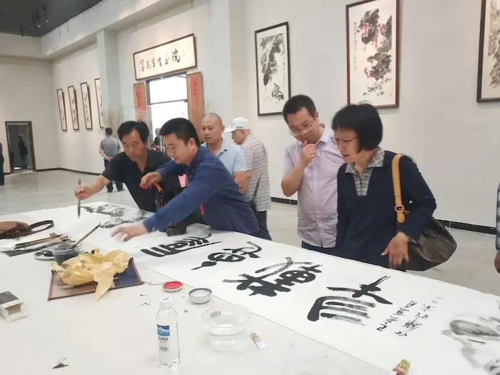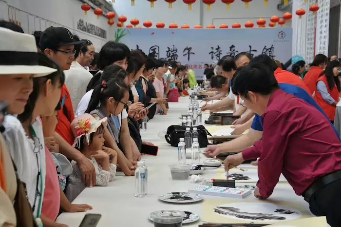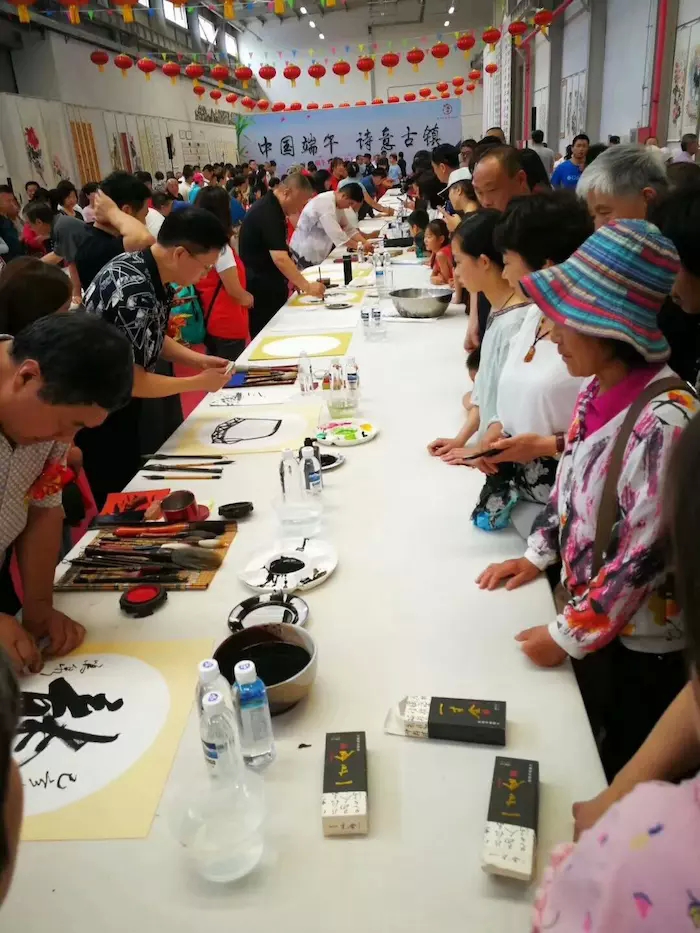 名家荟萃话端午,墨彩纷呈映张湾。在展览现场,一幅幅作品思想深刻、主题鲜明、视角独特、意蕴悠长,充满了浓厚的生活气息,书写了美丽张湾的建设实践,唱响了改革发展的时代旋律,表达了书画艺术家对首都发展的关心和关注。配书画展览照片。端午粽香时,翰墨更飘香。在现场笔会环节,书画艺术家们挥毫泼墨,并与观展的群众零距离互动交流。一幅幅技艺精湛、韵致生动国画作品,一幅幅或遒劲有力、或清爽洒脱的书法作品从艺术家笔下流畅而出,呈现在众人眼前,让大家领略到了中国书画的博大精深之美,增加了众人对艺术的认知。