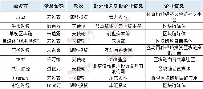 在各细分行业领域,据统计,8月披露融资数量最多的是与区块链相关的媒体行业,共9起,主要投资方包括云九资本、节点资本、云上资本、SMW基金等,融资金额多数未透露。