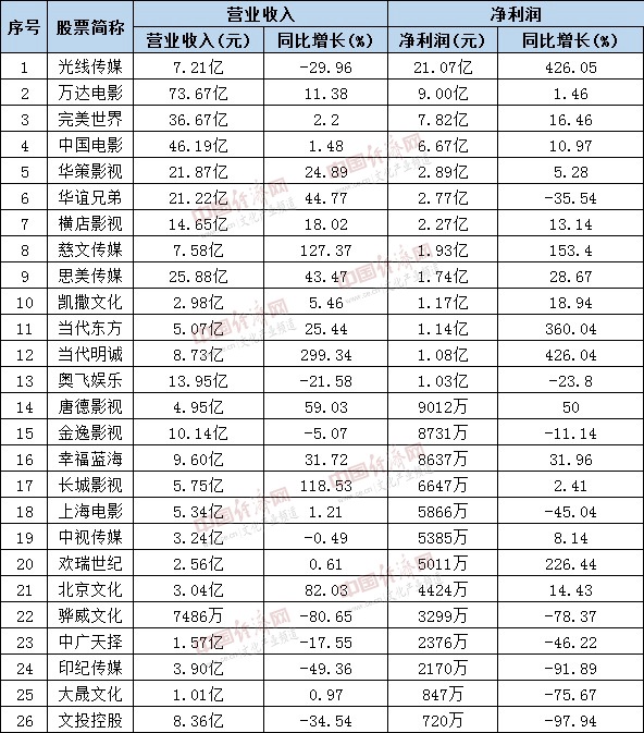 影视板块。从8月发布的2018年半年度财务报告来看,净利润增速方面光线传媒、当代明诚、当代东方、欢瑞世纪及慈文传媒排在前五,增速均超过100%。其中,上半年最赚钱的影视公司非光线传媒莫属。数据显示,虽然缺乏爆款作品,光线%。利润的增长来源出售新丽传媒股份确认的投资收益。据悉,扣除处置新丽传媒的18.81亿非经常性损益收入后,其净利润仅为2.25亿,同比下降38%。