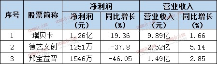 截至8月31日A股有3家工艺商品行业公司发布2018年中报业绩,分别为:瑞贝卡、邦宝益智、德艺文创。其中,瑞贝卡公司半年度营业收入98904.06万元,同比增加1.66%,归属上市公司股东的净利润12560.10万元,同比增加19.36%。