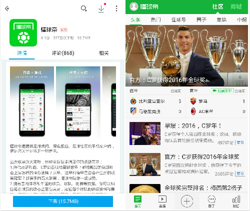 推荐理由:C罗此次获奖可谓是实至名归。在2016年的“战场”上C罗曾获得数项荣誉。而懂球帝APP,内含大量足球深度报道,包括欧冠赛场上,C罗打进16球获得欧冠金靴;欧洲杯赛场上,C罗前两场比赛被黑得体无完肤,但最终帮助球队惊险出线等多个荣耀时刻。同时,懂球帝还拥有详尽的球员、球队、比赛等数据,你可以知道每位球员的动态甚至是伤病史。