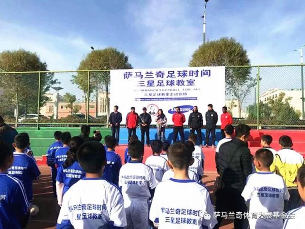 2018年10月25日,“萨马兰奇足球时间三星足球教室”走进张掖市甘州区为当地35所城乡小学的近130名足球教练员和12岁以下小学生进行了为期一天的指导培训。教练团队进行了熟悉球性、传接球、射门、实战等内容的教学和互动。