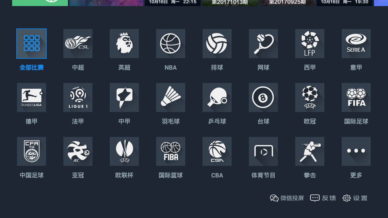 我们给家里的智能电视或网络机顶盒安装好后打开它的首页,推荐图展示的是当日或者近期热门的体育赛事