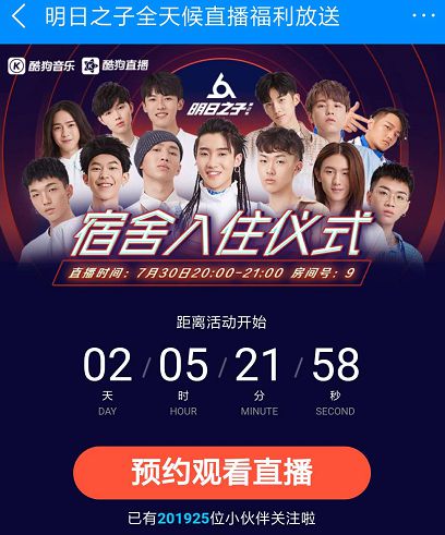 现在已经有20万+粉丝在酷狗直播进行了预约,你还等什么?赶紧打开酷狗预约7月30日晚20点的独家直播吧!小哥哥们24小时都在等着你!