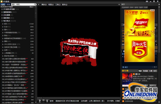 安装完成以后,启动程序,接下来进入PPS网络电视的主界面,这时用户可以看到新版本的主界面和旧版本一样,看不出有什么变化。