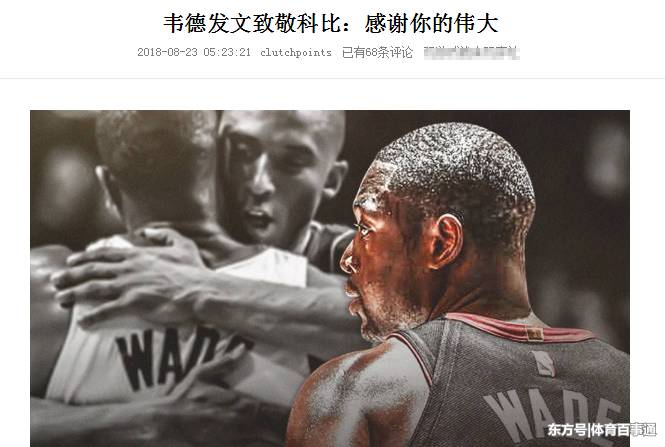 韦德在得知今天是科比的生日后,特意发文向科比致敬,并说道:感谢你的伟大。两人都是NBA历史上的超级分卫,多少有点英雄惜英雄的味道。文中韦德还深情说道,科比一直是他追赶的对象,可是当科比退役后,再也找不到参照物了。而且韦德还说自己永远也超越不了他,已到生涯末期的韦德,发出如此感慨实在让人感到唏嘘。