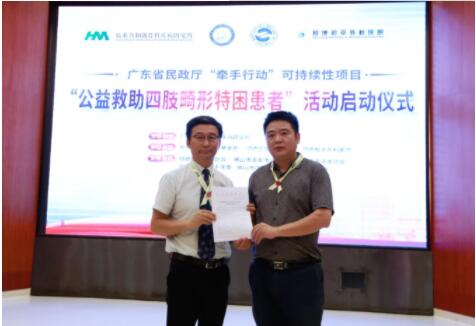 2019年,张敬良博士牵头广东省和迈骨科疾病研究所启动“牵手助行”项目,联手北京市仁爱慈善基金会,对广东省内符合条件的脑瘫后遗症、小儿麻痹后遗症、先天性髋关节脱位、马蹄内翻足、四肢畸形特困患儿、孤儿、类孤儿进行救助,以发挥骨研所的显微微创技术专长,尽己所能,救助“折翼的天使”。至今,已有上百名来自全国各地的小患者前来咨询,已有多名顺利得到公益救治,张敬良也用一次次的实际行动,奉献着自己的爱心,并得到省市区卫健部门的嘉许。