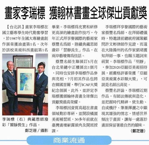 台湾艺术家画家李瑞标荣获翰林书画全球杰出贡献奖