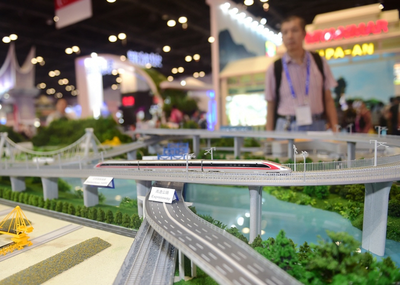 在广西南宁国际会展中心展出的中车集团的新型公共交通车辆模型(9月13日摄)。