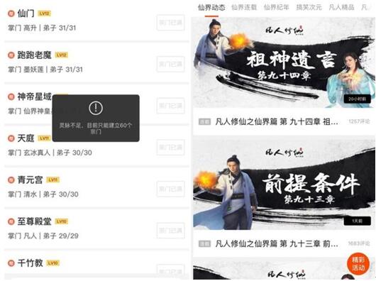 凡人仙界篇APP是一款基于网络热门IP《凡人修仙之仙界篇》制作、由猫片负责开发的APP产品。而当用户使用这款APP时,能够第一时间阅读《凡人修仙之仙界篇》的最新连载、同其他作品粉丝成立“宗门”进行互动、体验AR短视频风采、欣赏趣味漫画、了解动画CG大电影动态更新……可以说,利用这一款APP,就能够让用户一手掌握《凡人修仙传》的全部奥妙。因此一经上线即成为用户踊跃下载的对象。