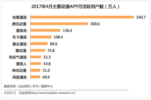 同时,相关数据显示:当前国内十大主要动漫APP的月活量接近50万以上,最高的“快看漫画”更是突破了500万人。其中88.5%的用户,将使用APP的主要目的放在了“阅读漫画”上。
