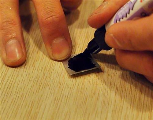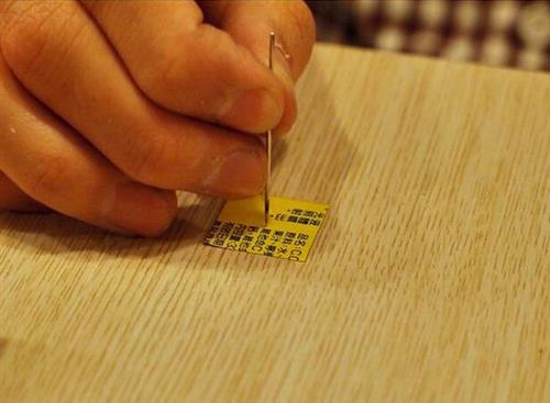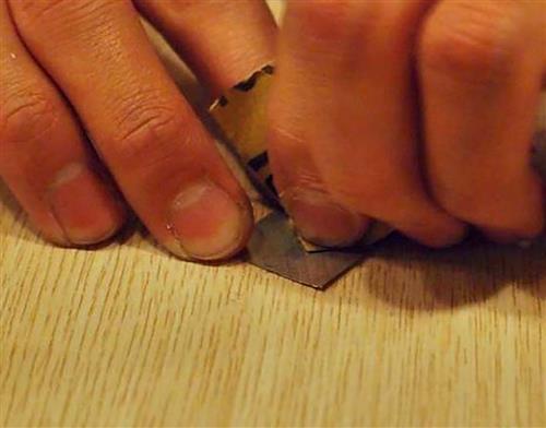 3 用砂纸将刚刚打洞的铝片磨平、磨薄,这个步骤也会影响成像,请大家务必好好做。