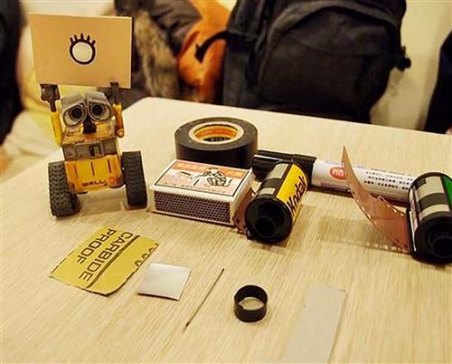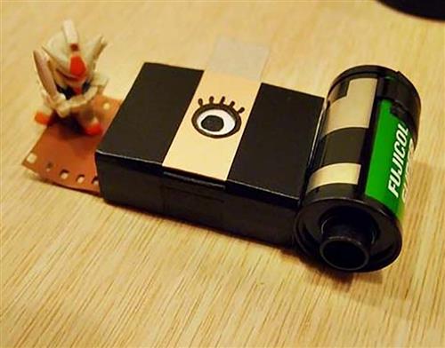 1 制作需要的材料:完整的火柴盒、电火布胶带、黑色马克笔、一卷用完的底片、一卷全新的底片、1000号以上的砂纸、铝罐上裁下来的铝片、一根针、塑胶环、T型的快门挡板、相机正面挡板。当然,还有一些剪刀、美工刀哦!