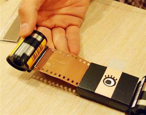 16 将用过的底片的一端用透明而薄的胶带连接起来。记得不能太厚,因为是要卷进旧的底片内,太厚会很难卷。