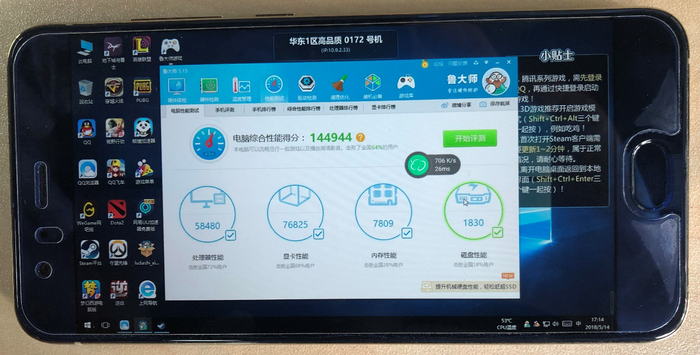 先上个高配,下个鲁大师,跑跑分,看看是不是货线分,可以哦!比我小米笔记本要强很多很多。怪不得,上面都是最火的端游。