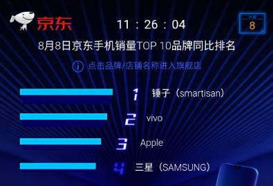 毕竟是鸟巢发布的手机,锤科这款手机还是取得了销量冠军的成果的,在京东同比排名上锤子手机是取得了双料第一的成绩,可以说是今年卖得最好的年度旗舰手机了。