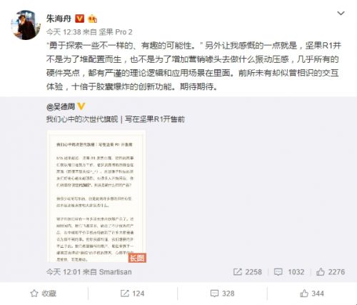 5月11日,锤子科技产品经理朱海舟透露,坚果R1并不是为了配置而生,也不是为了增加营销噱头去做什么振动压感,几乎所有的硬件亮点都有严谨的理论逻辑和应用场景在里面。前所未有却似曾相识的交互体验,十倍于闪念胶囊、大爆炸的创新功能,值得期待。