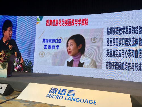 刘兆义教授在会上发表了以教育信息化为英语学与教赋能的主题分享,还特别指出了:微语言创新的中外双师互动直播英语课堂能够很好的贴切英语教学的发展经验,能直接真实的获得口语交流体验,英语能真实应用心态更好表达更自信,有助于语感的培养和形成。
