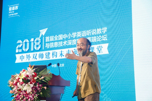 2018年8月15日,由教育部课题的重点子课题《信息技术条件下双师在线听说教学模式建构》课题组、微语言英语教育科学研究院共同主办的“2018首届全国中小学英语听说教学与信息技术深度融合高端论坛”在北京雁栖湖畔隆重召开,此次高端论坛受到了教育各界人士的广泛关注和大力支持。作为本次论坛会议的主办方,课题组邀请到了来自全国各地20余位顶尖教育专家、200多位省市教研员和学校代表、200多位来自全国各地的微语言合作伙伴,与会同仁们共同探讨了信息技术条件下中外双师如何建构未来英语课堂。
