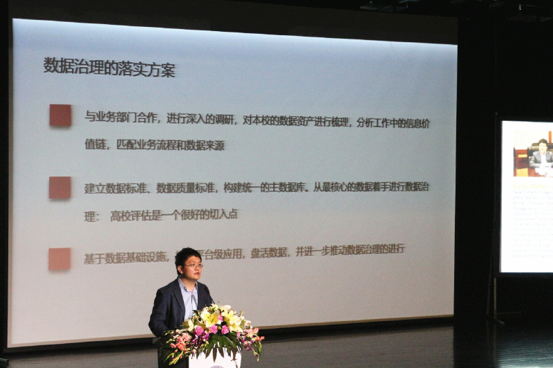 在会议的第五个板块高等教育评价体系与数据治理中,全球学校与学生发展评价研究中心副主任、ApplySquare(申请方)CEO王刚带来了题为“教育评价中的数据治理”的报告,他从4个方面带领大家走近数据治理,展示了数据治理在教育评价中的作用以及重要性。