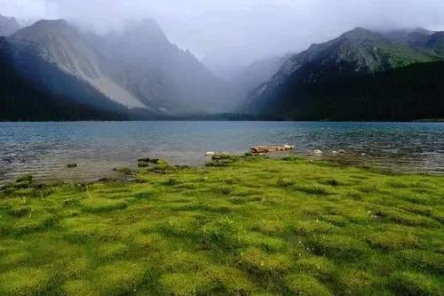 横穿这片草原,就可看见措普湖了。越过一个小山包,措普湖犹如一面蓝色宝镜展现在我们眼前。雪山、森林、草地加上这晶莹剔透犹如水晶般的湖,瞬间让人感觉到尘世间所有的繁杂琐事都被涤荡得一干二净。