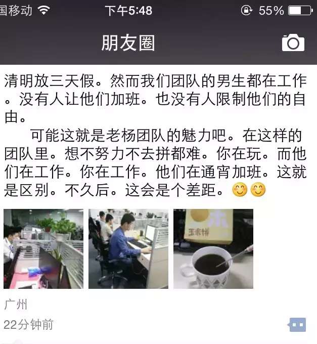 4月4日,邢帅朋友圈发了一张某小组员工朋友圈的截图,配文:“自动开始细胞化改革后,就这样了!”