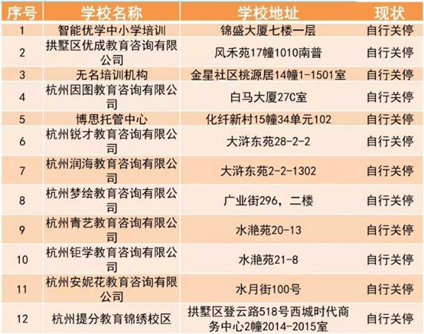 前不久,杭州市公布了中小学生校外培训机构首批“黑名单”,193家机构上榜。上了黑名单的培训机构,是没有办学许可证的,有的被责令停止办学,有的是要求自行关停。