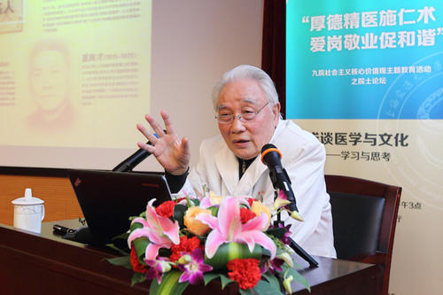 作为医学院教学医院的教师,邱蔚六说一生所做的第二件事就是“教书育人”,而要教书育人就必须自己要“博学勤思”,要多读书、多思考。