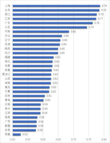 据介绍,房地产基础数据评价、教育行业内部评价、宏观居住环境评价三个指标的得分都是基于国家统计局2016年相关数据计算,总指数是基于三个指标的得分计算。指数越接近1,表明该地教育行业从业人员的居住情况越理想。