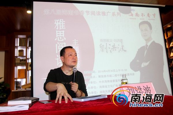 南海网海口4月30日消息(南海网记者陈望)4月30日上午,受第八届海南书香节组委会的邀请,贵学教育创始人、北京雅思总校校长刘洪波来琼举办主题讲座,讲授英语学习理念和雅思学习方法。