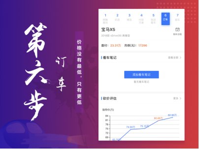 第六步订车,规避价格陷阱,让你把钱花在刀刃上。在订购之前,用户往往会遇到优惠信息不透明、价格陷阱多、购车费用不透明等问题,订车阶段会根据用户到店看车后明确的购车目标,提供更匹配的解决方案,帮助用户以更好的服务、更实惠的价格,买到心仪的车。尤其是买车用户在线下店订车砍价过程中,七步买车法还会支招给车主提供砍价工具、团购信息等,帮助车主以更合理的价格去订车。