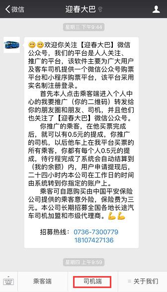 而对于同样实名入驻平台的司机来说,迎春大巴能够为其带来更多的常客,确保业务的稳定、增加收益。另外,迎春大巴公司对全国各地的长途汽车司机和市级代理商的加盟,表示长期欢迎。如若成功推荐客运司机注册使用迎春大巴,推荐人及司机均可领现金红包(详情可关注迎春大巴微信公众号或咨询官方热线进行了解)!