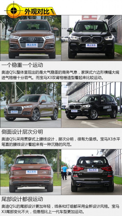 在豪华中型SUV这一细分市场中,BBA三剑客之间的争斗从未停止。而提到奥迪Q5L的直接竞争对手,很多人会不自觉的想起宝马X3。的确,这两款车型是“老冤家”了。全新宝马X3也在前段时间上市,在很多方面也进行了升级。那么全新奥迪Q5L和全新宝马X3到底如何?让我们一起来看看吧。