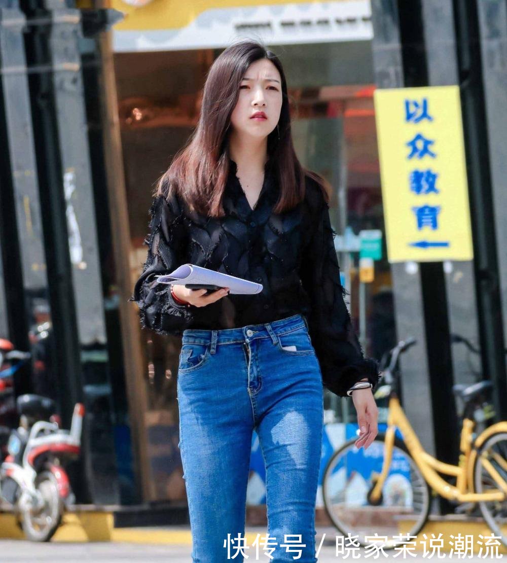 从头到脚的黑色不仅不显瘦还显胖,所以我们在搭配上尽量不要的一身都是黑,可以选择用其他颜色的搭配来辅助黑色。比如黑色的衬衫上衣,下身搭配上一条牛仔蓝的喇叭裤,穿着一双黑色高跟鞋,这样档次提高不少,还充满了活力青春感,看上去也更加的有气质。