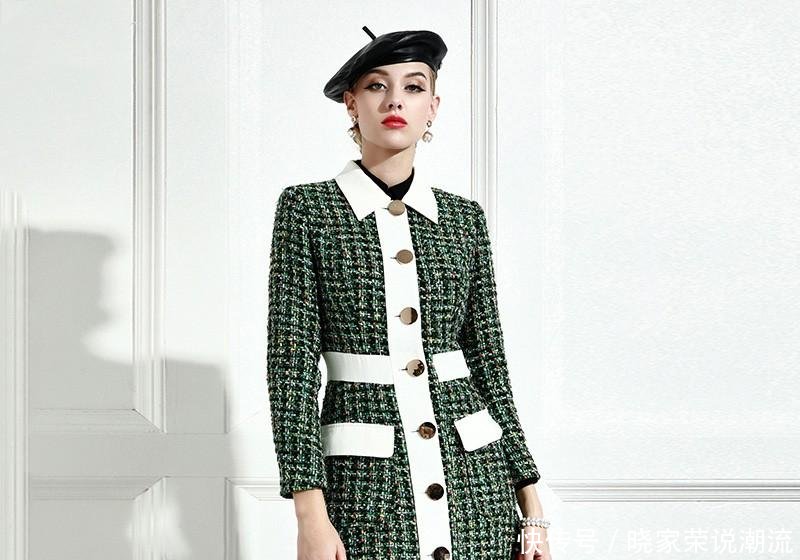 这种小香风设计真的太耐看太高级了,别致粗花呢材质,绿色的格纹迎合了今年的流行,而白色的撞色条,不仅让衣服更显年轻,而且勾勒出鲜明的曲线,衬托出细腰遮掩赘肉,中长款的时尚长度,更显都市女性的干练精致。